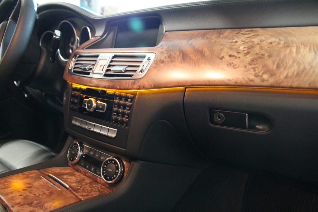 Verhaal : De klant hield van de auto maar was niet tevreden met de klassieke look binnenin. Het geborsteld titanium vinyl van 3M paste perfect bij dit project... gedaan in 1 dag