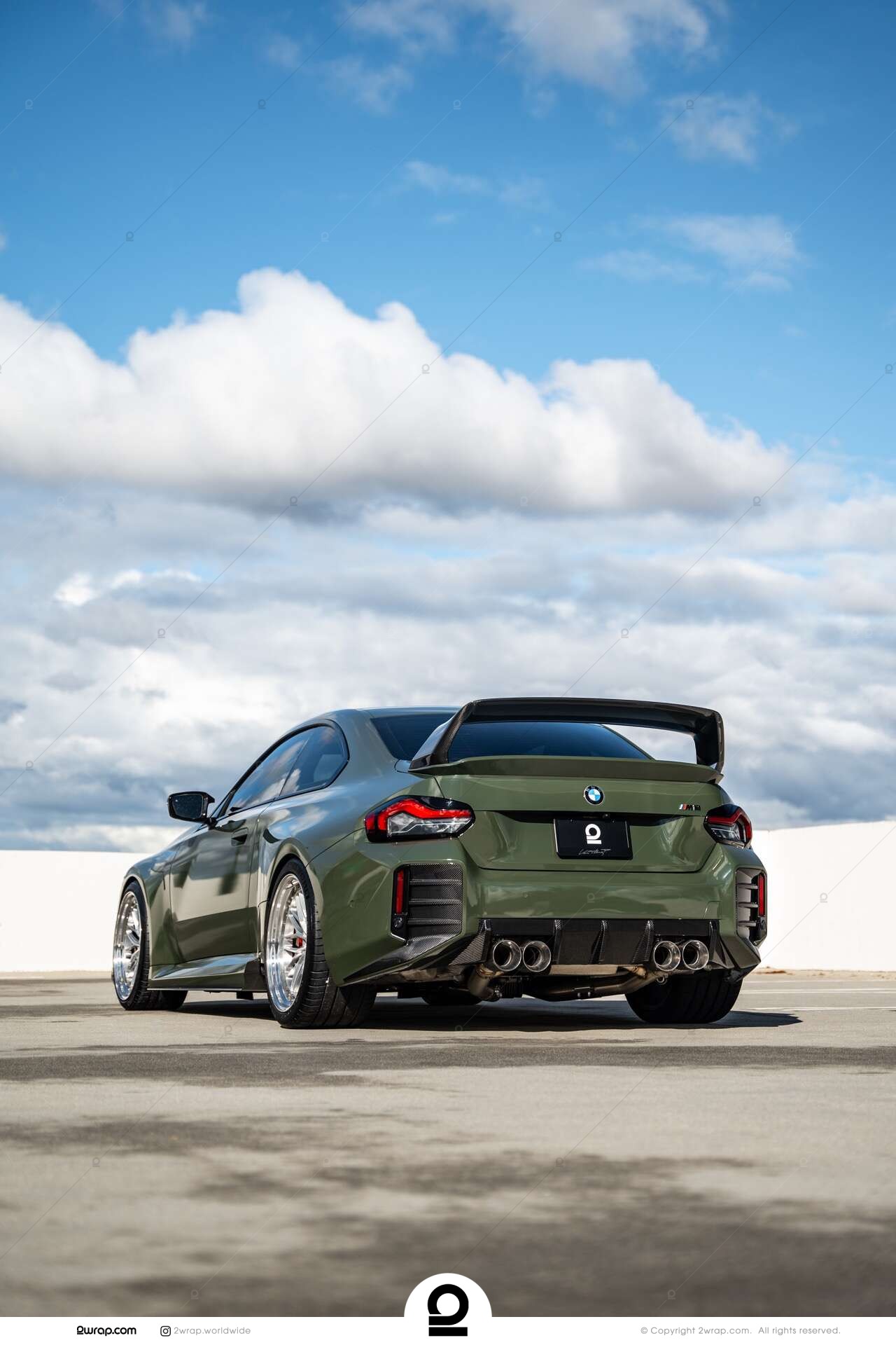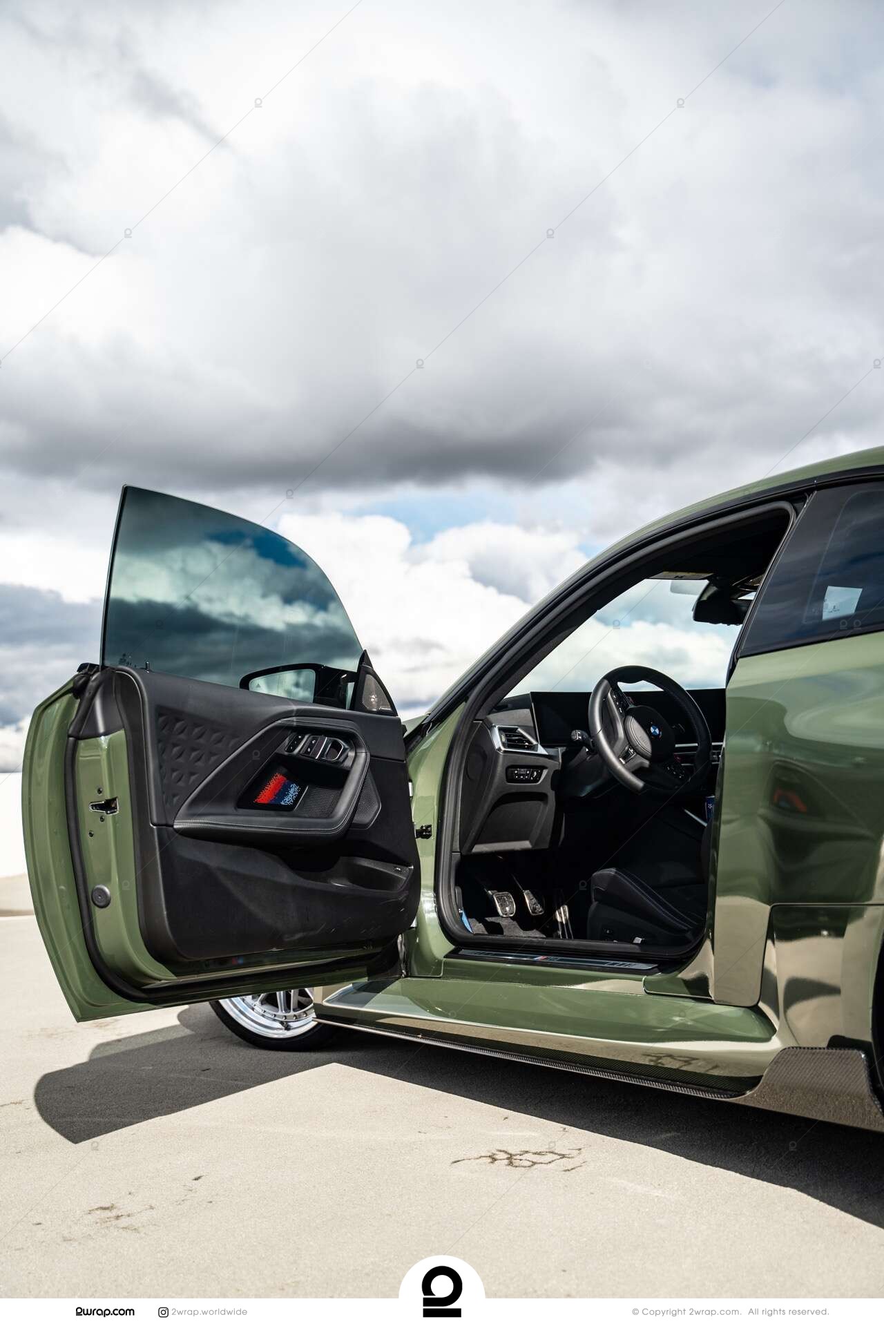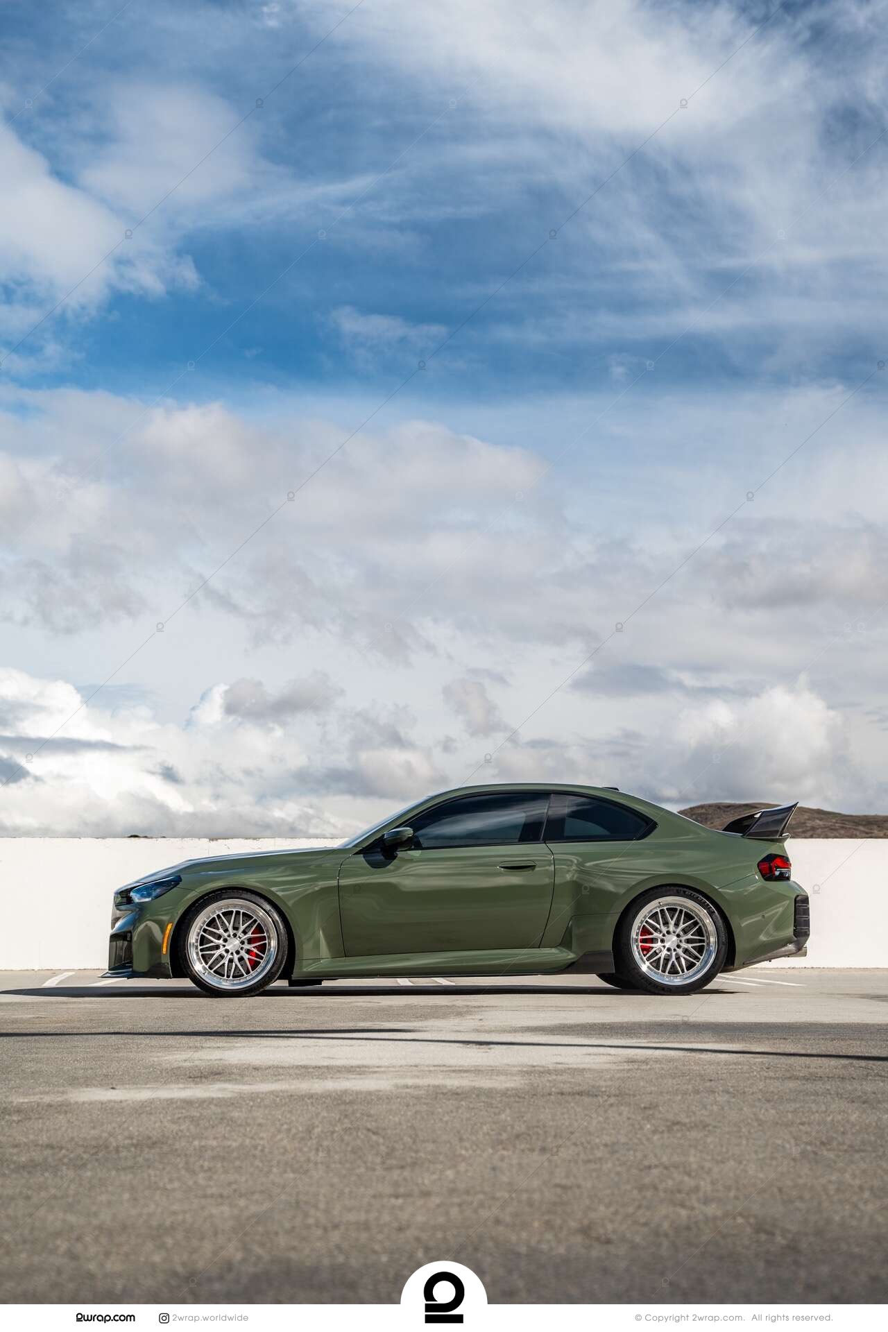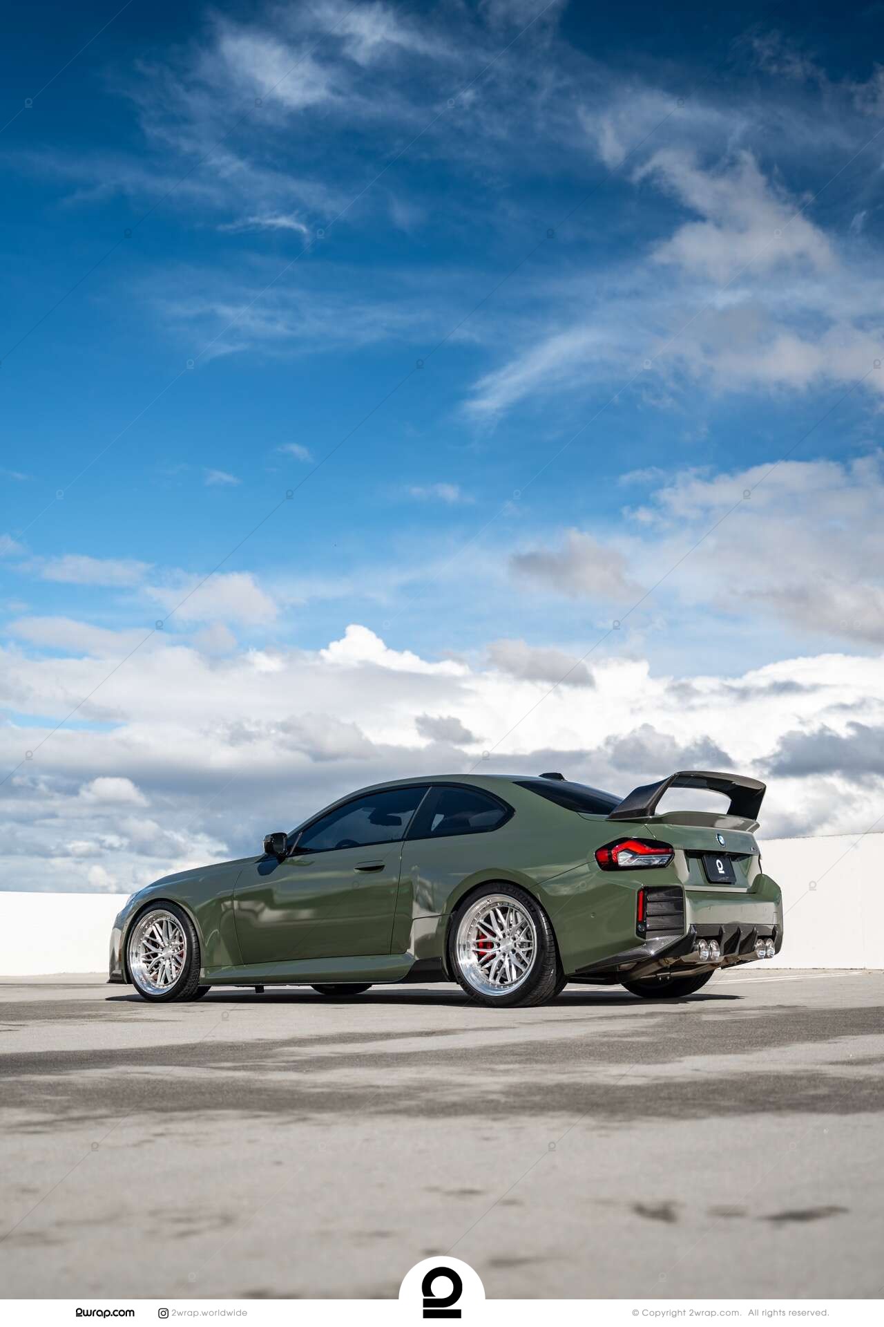 This BMW M2 has undergone a stunning transformation with our top-notch wrapping services. The reality TV star and entrepreneur opted for a sophisticated and exclusive warm glossy Olive black green  color, elevating the aesthetics of his already luxurious vehicle. In collaboration with APA / EVOLV,  we ensured every detail was immaculately executed. The expertise extended to the inside door jambs, where precision was key to achieving a seamless and flawless finish. The result is a uniquely customized BMW M2 that not only reflects Scott Disick’s discerning taste but also stands out as a testament to the artistry and craftsmanship behind our exclusive car wrapping services.