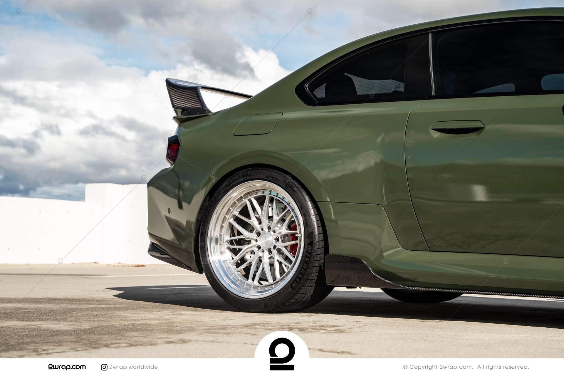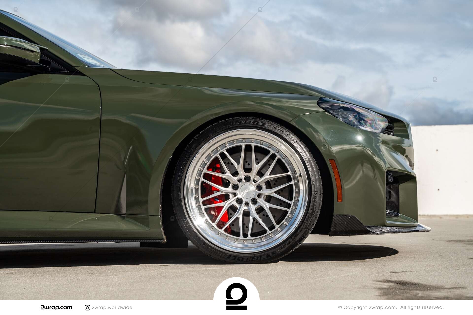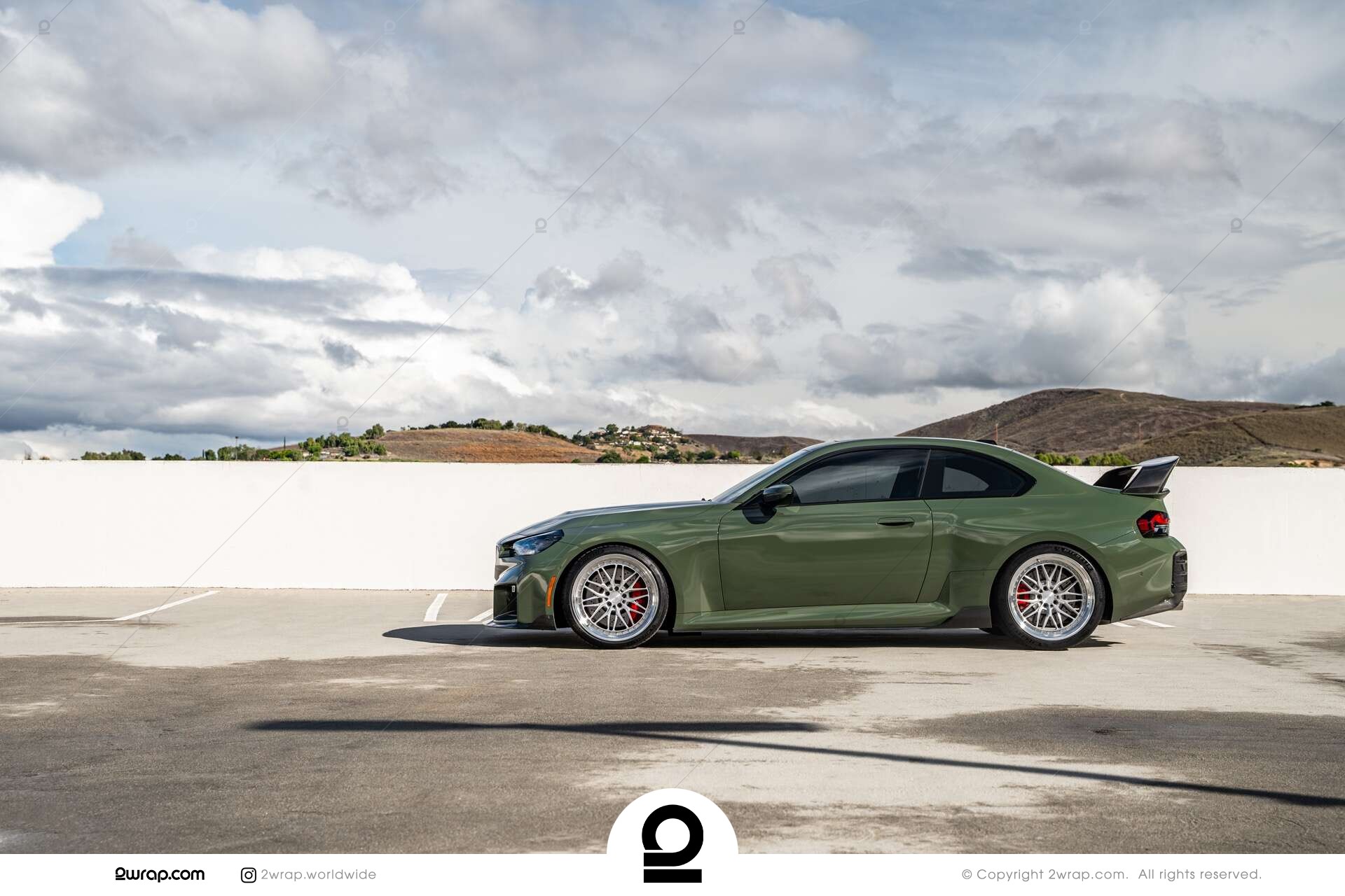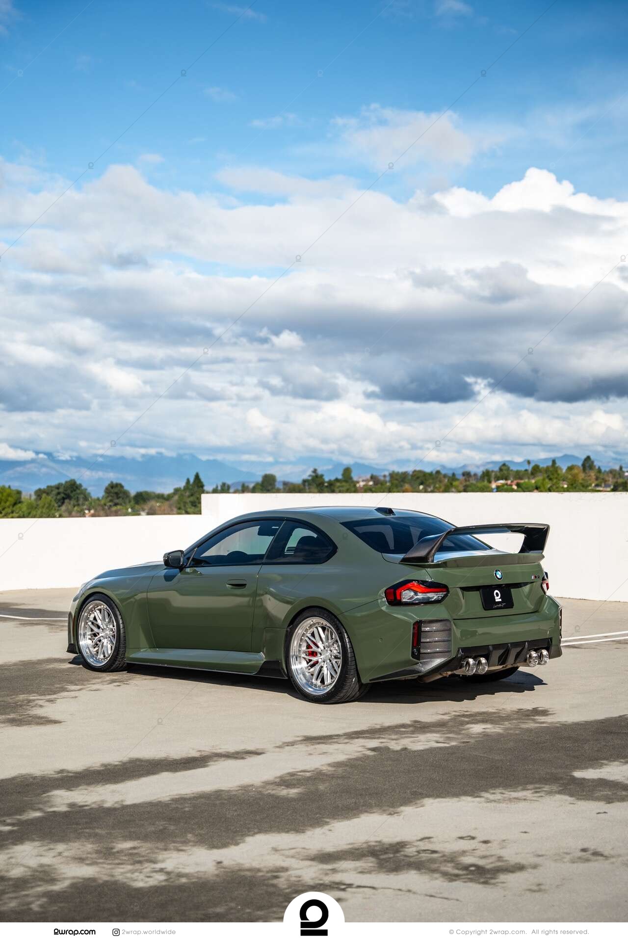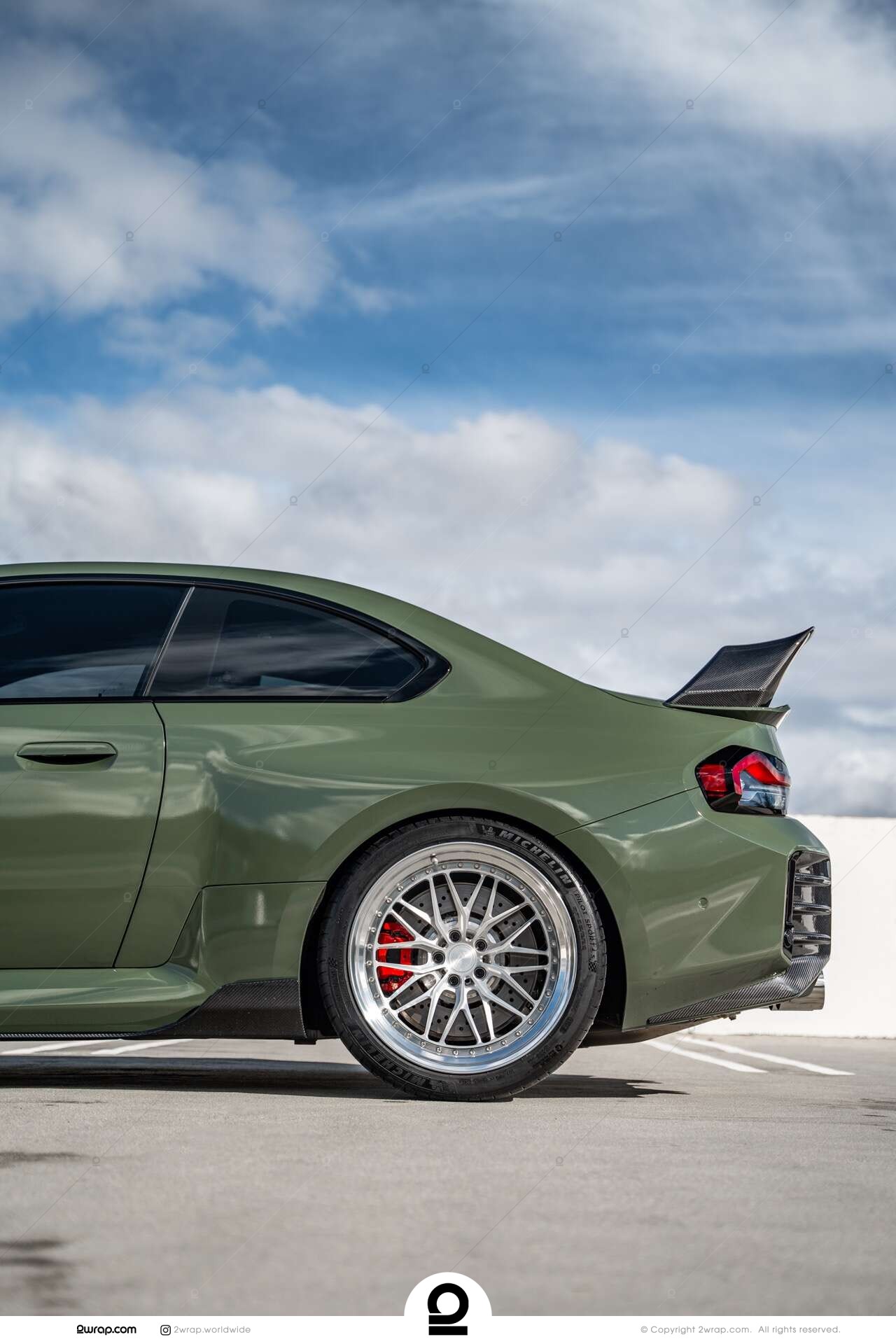 This BMW M2 has undergone a stunning transformation with our top-notch wrapping services. The reality TV star and entrepreneur opted for a sophisticated and exclusive warm glossy Olive black green  color, elevating the aesthetics of his already luxurious vehicle. In collaboration with APA / EVOLV,  we ensured every detail was immaculately executed. The expertise extended to the inside door jambs, where precision was key to achieving a seamless and flawless finish. The result is a uniquely customized BMW M2 that not only reflects Scott Disick’s discerning taste but also stands out as a testament to the artistry and craftsmanship behind our exclusive car wrapping services.