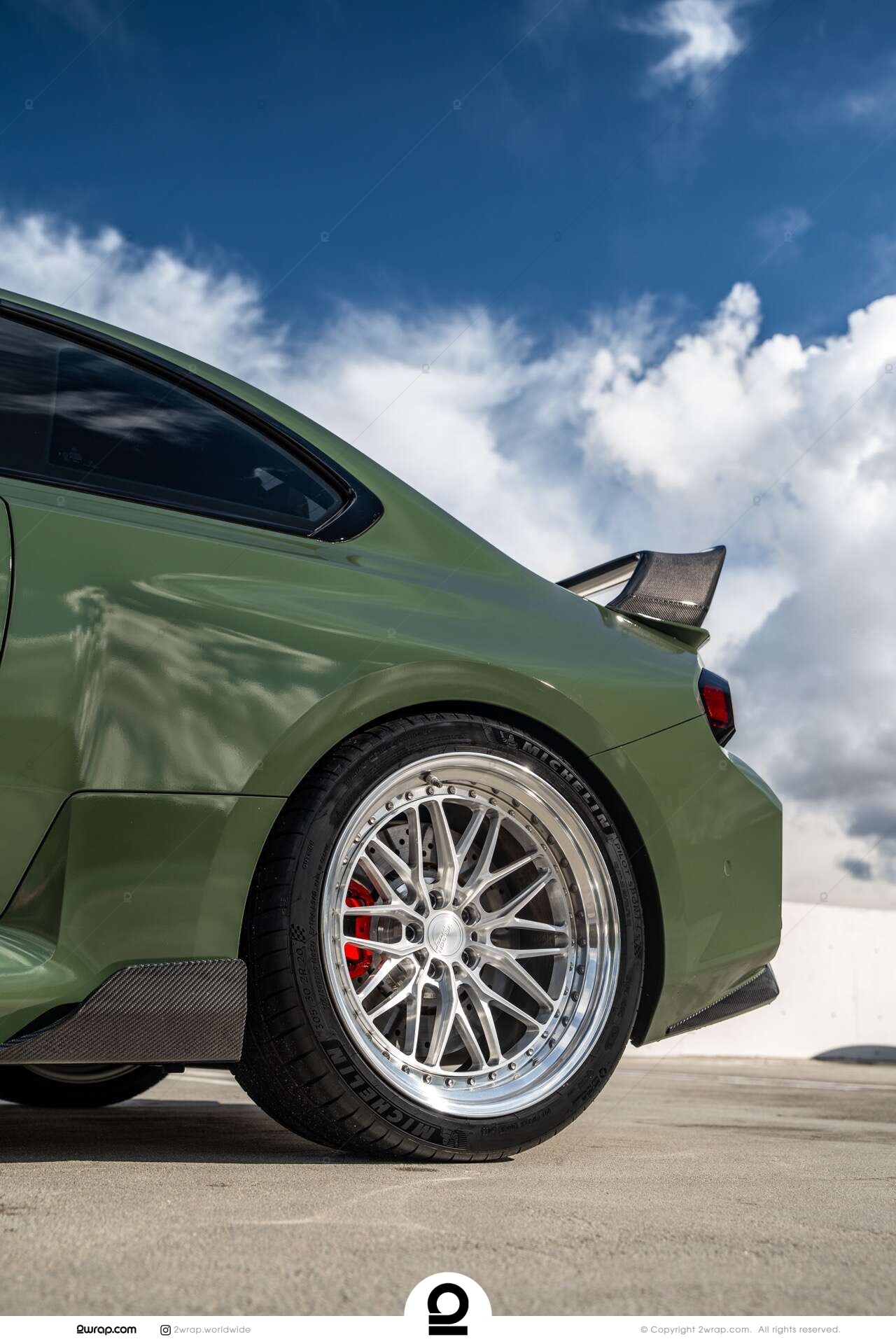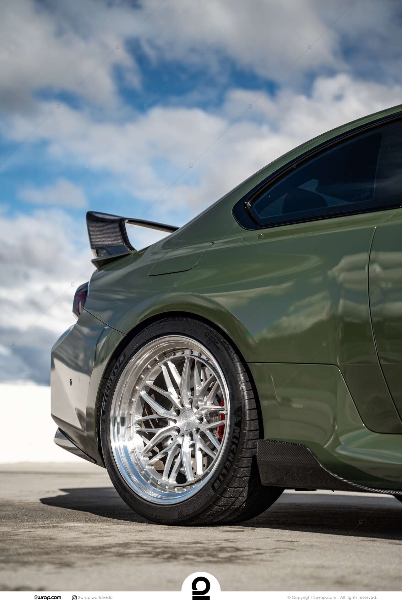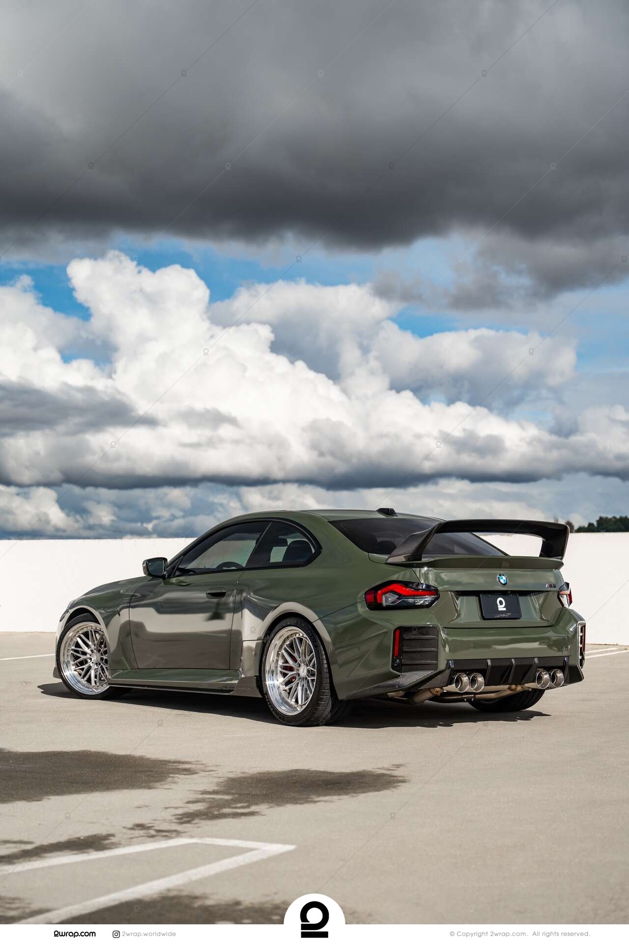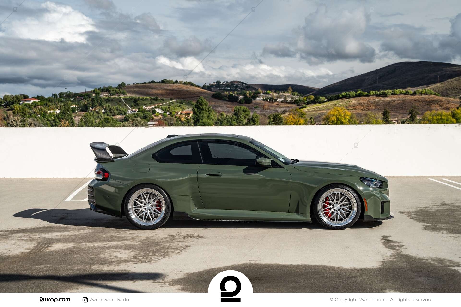 This BMW M2 has undergone a stunning transformation with our top-notch wrapping services. The reality TV star and entrepreneur opted for a sophisticated and exclusive warm glossy Olive black green  color, elevating the aesthetics of his already luxurious vehicle. In collaboration with APA / EVOLV,  we ensured every detail was immaculately executed. The expertise extended to the inside door jambs, where precision was key to achieving a seamless and flawless finish. The result is a uniquely customized BMW M2 that not only reflects Scott Disick’s discerning taste but also stands out as a testament to the artistry and craftsmanship behind our exclusive car wrapping services.