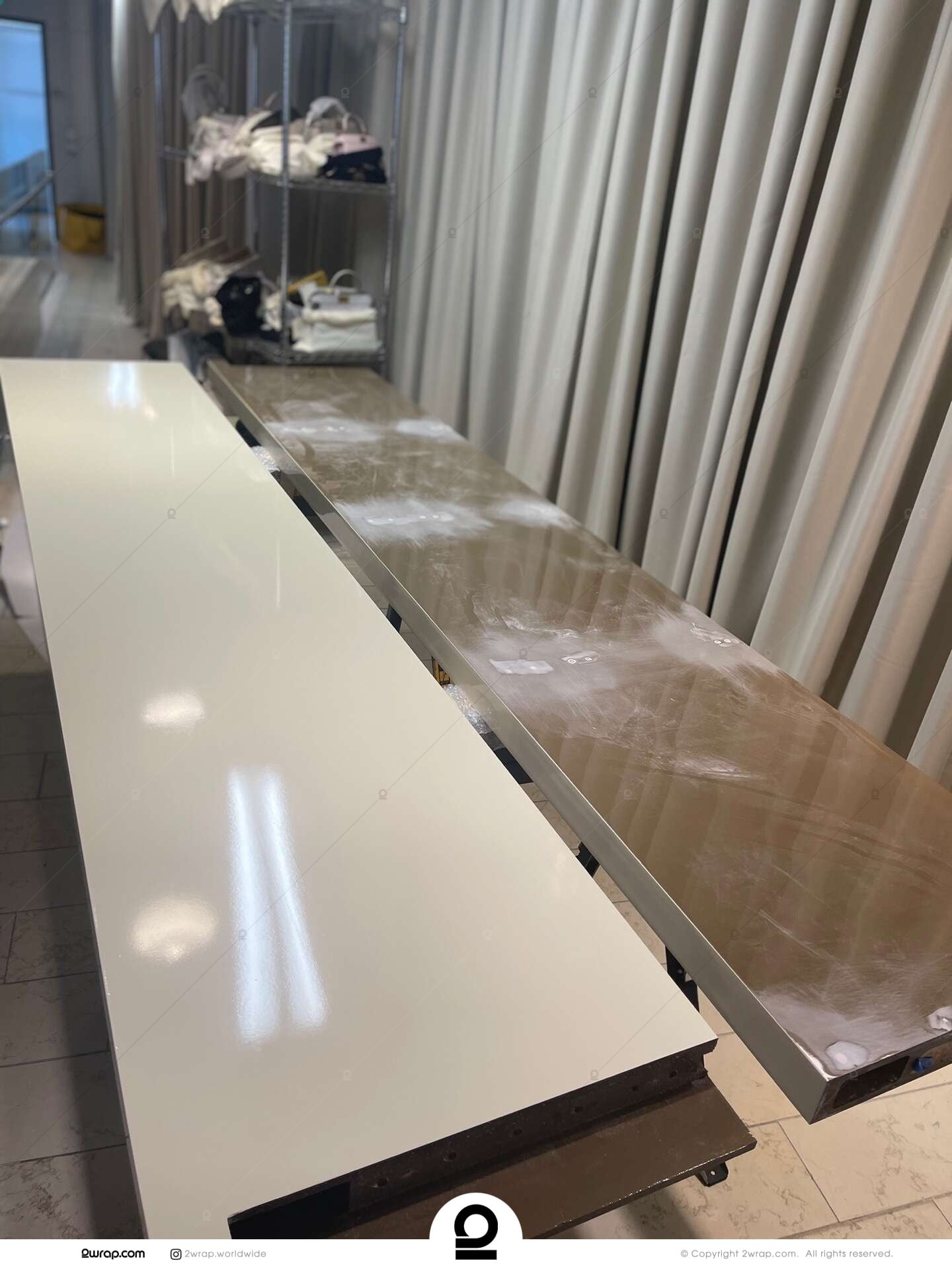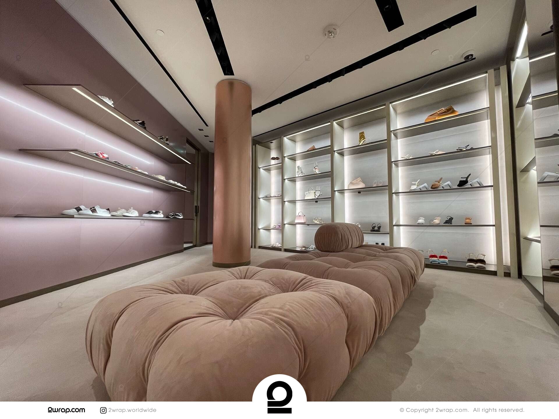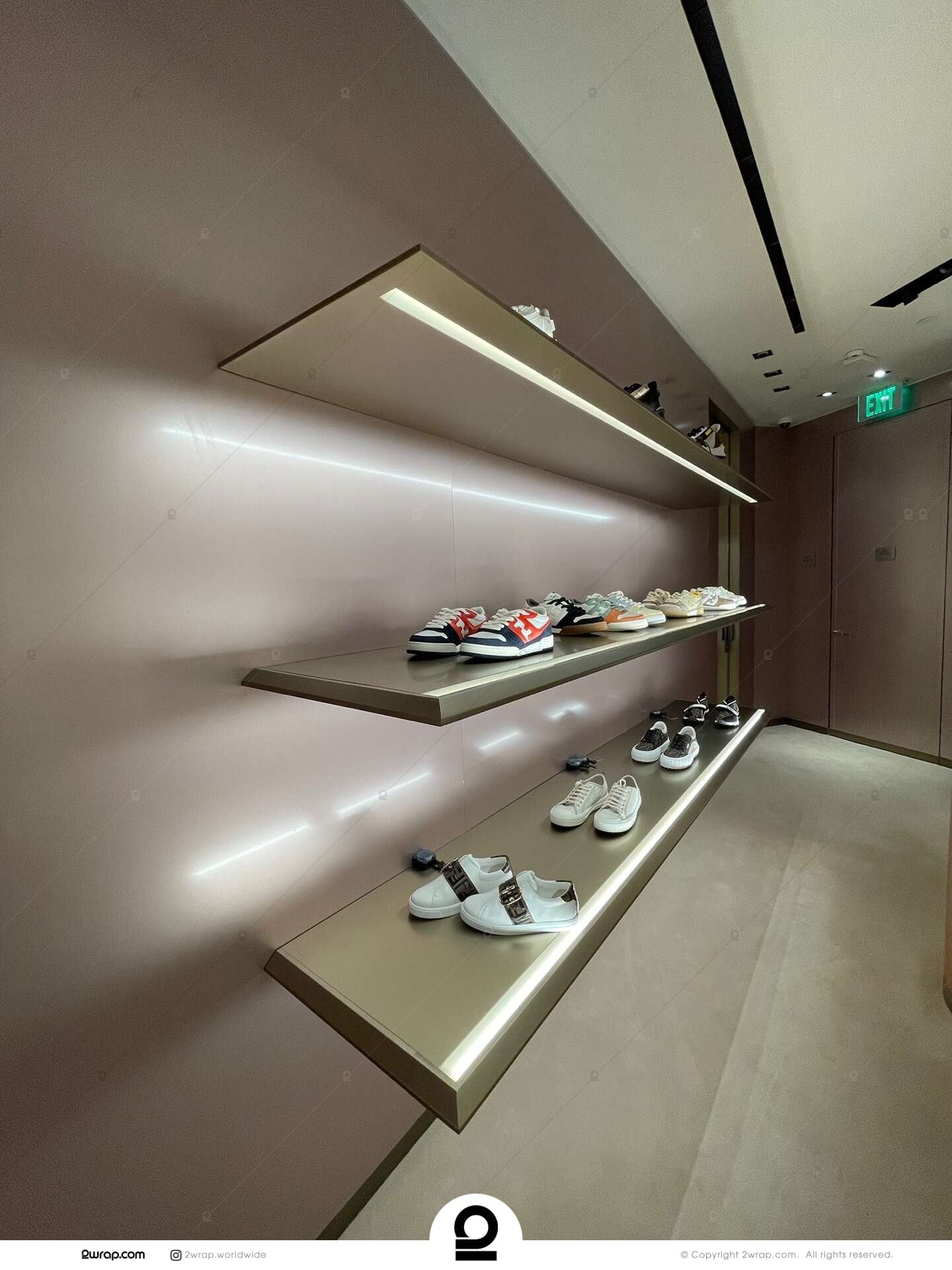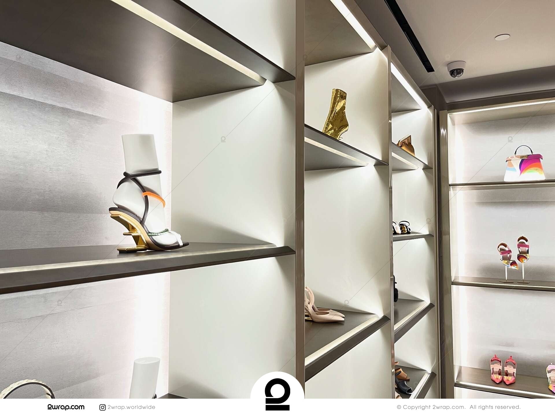 One of this project’s most notable aspects was the metamorphosis of the matte rose metallic walls. Fendi partnered with 2wrap.com to custom print these walls to achieve a seamless mix with the existing interior features. Consequently, the matte rose metallic theme was seamlessly incorporated, improving the boutique’s overall visual appeal.Ā Our attention to detail is demonstrated by the bespoke prints’ flawless match to the existing interior pieces, which was made possible by the accuracy and caliber of our work.