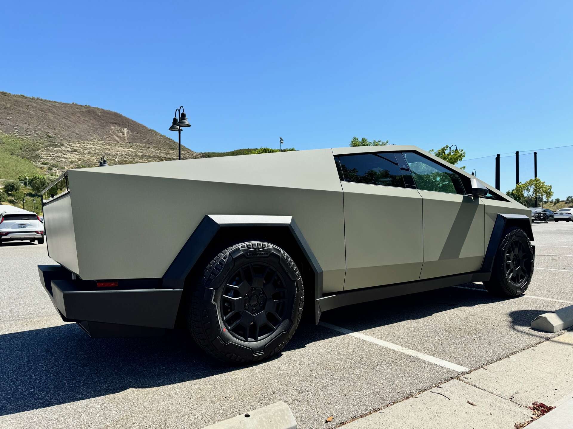 Avery’s matte Khaki green wrap on a Tesla Cybertruck is one of our recent projects that have been thrilling us. This unique color accentuates the bold and rugged design of the Cybertruck, which naturally goes well with its angular and futuristic aesthetic. The car looks sophisticated but aggressive at the same time due to the presence of a matte layer.