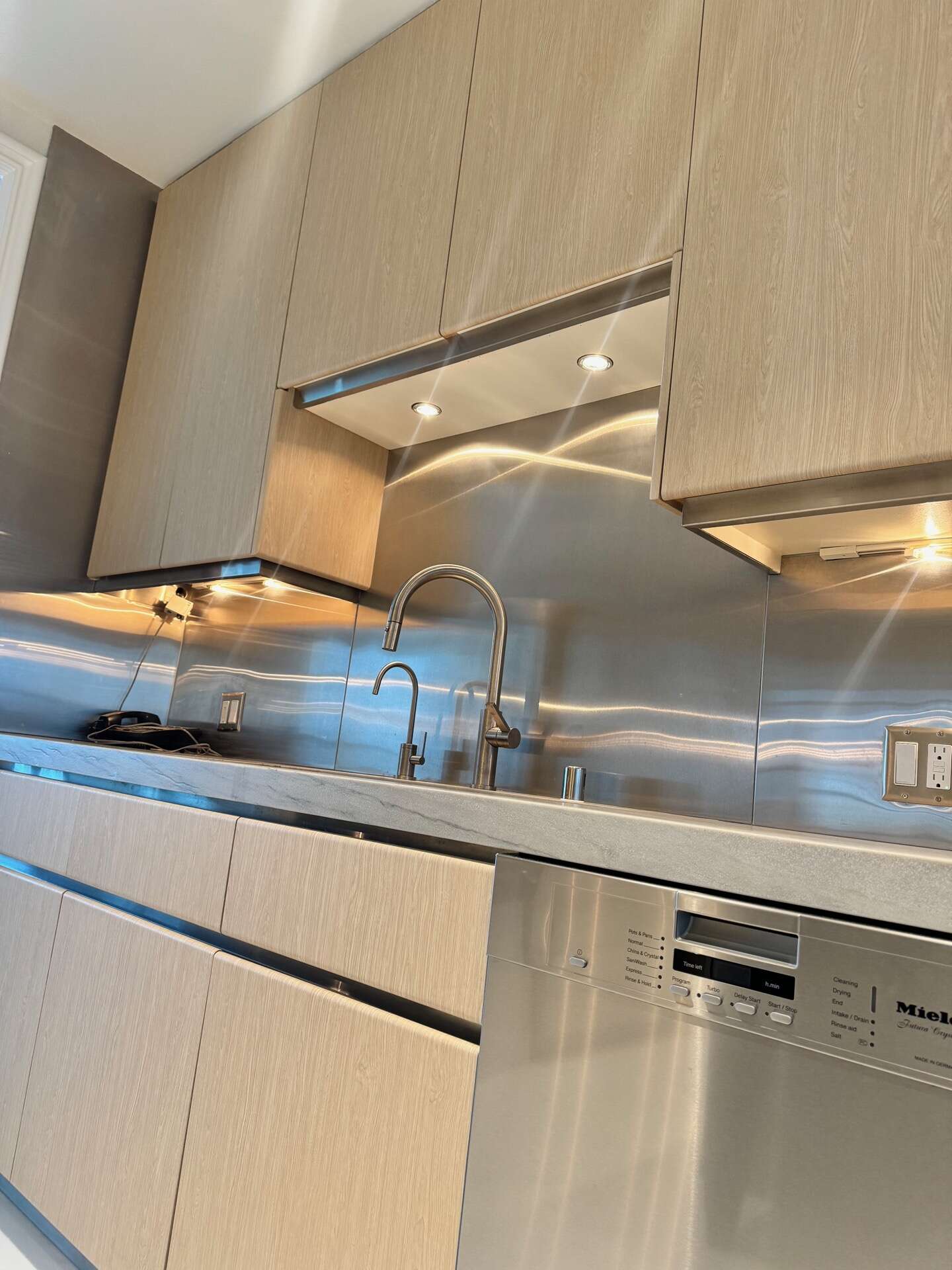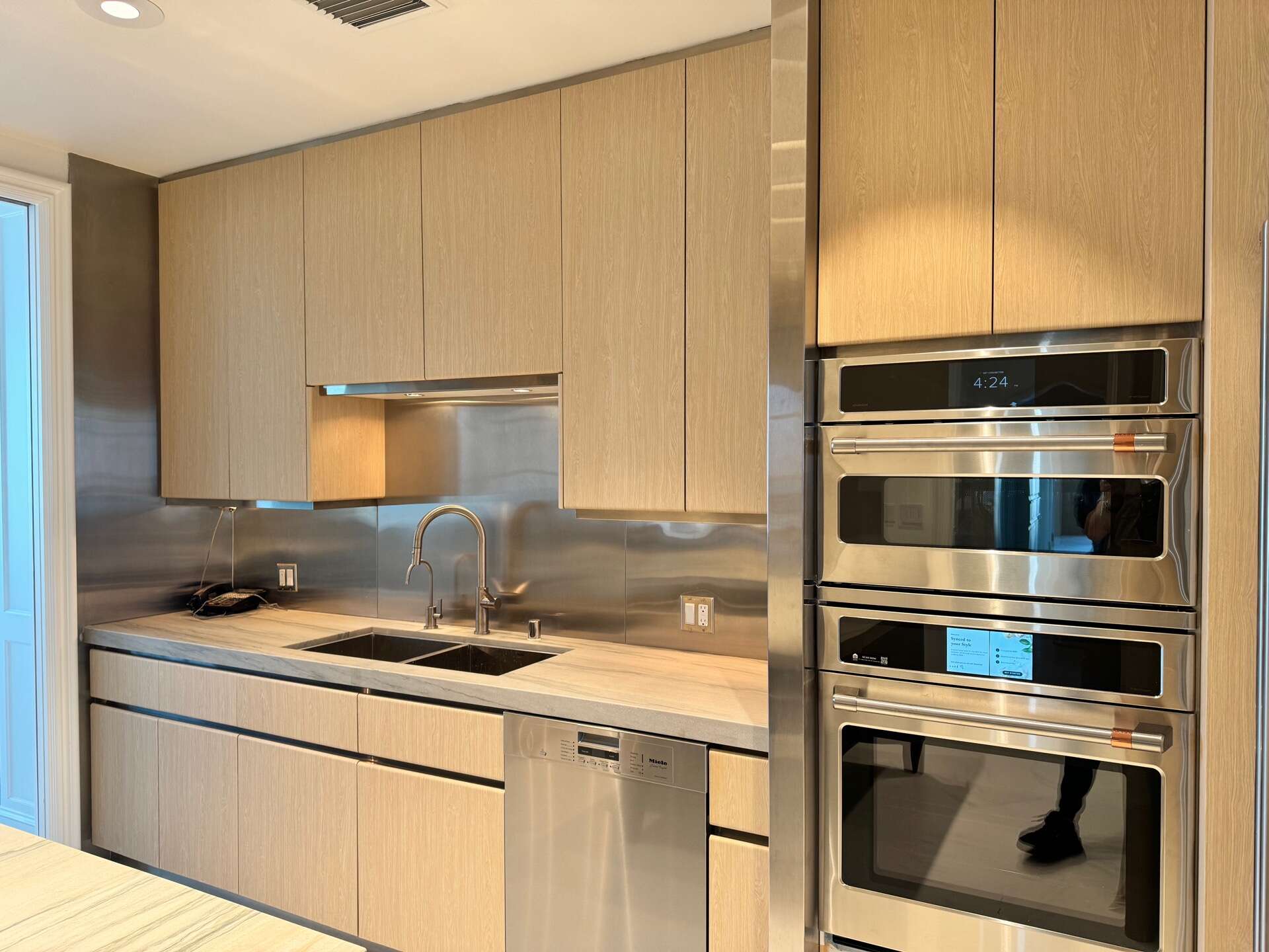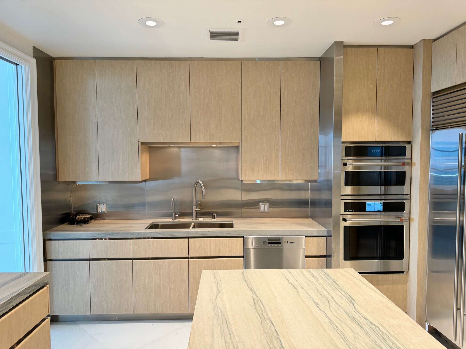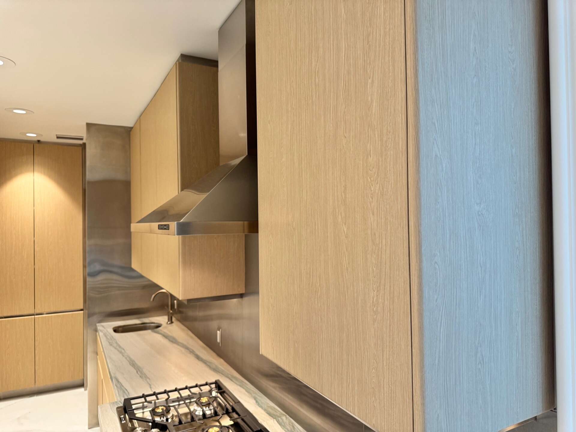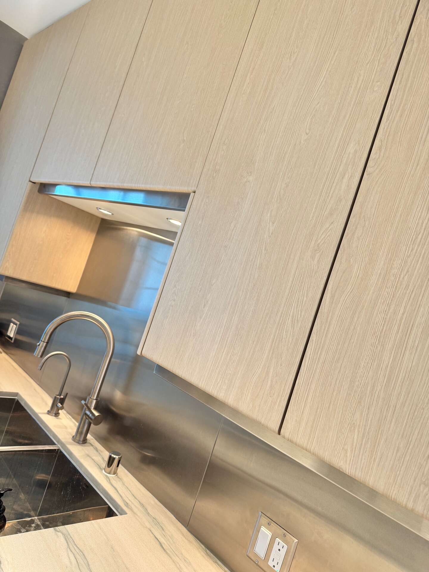 Here’s a glimpse of the kitchen before we wrapped it in light oak wood vinyl. The texture is so lifelike that it’s nearly impossible to distinguish it from real wood. This high-quality vinyl isn’t just about looks – it’s also antibacterial, scratch-resistant, and allows for quick, mess-free installation. With no dust or disruption, it’s a smart alternative to traditional remodeling, giving your kitchen a fresh, refined look in no time.