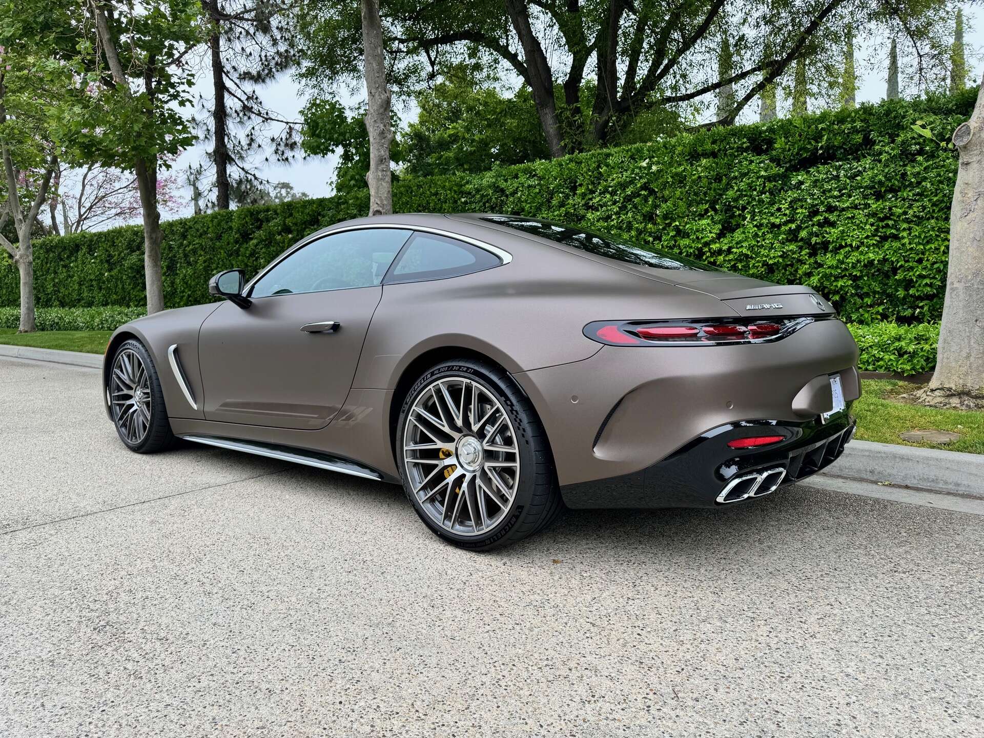 This modification enhances the car’s aesthetic appeal and provides superior protection. The 3M Matte Brown Metallic wrap was chosen for its unique blend of sophistication and modernity, perfectly complementing the GT55 AMG’s sporty design.